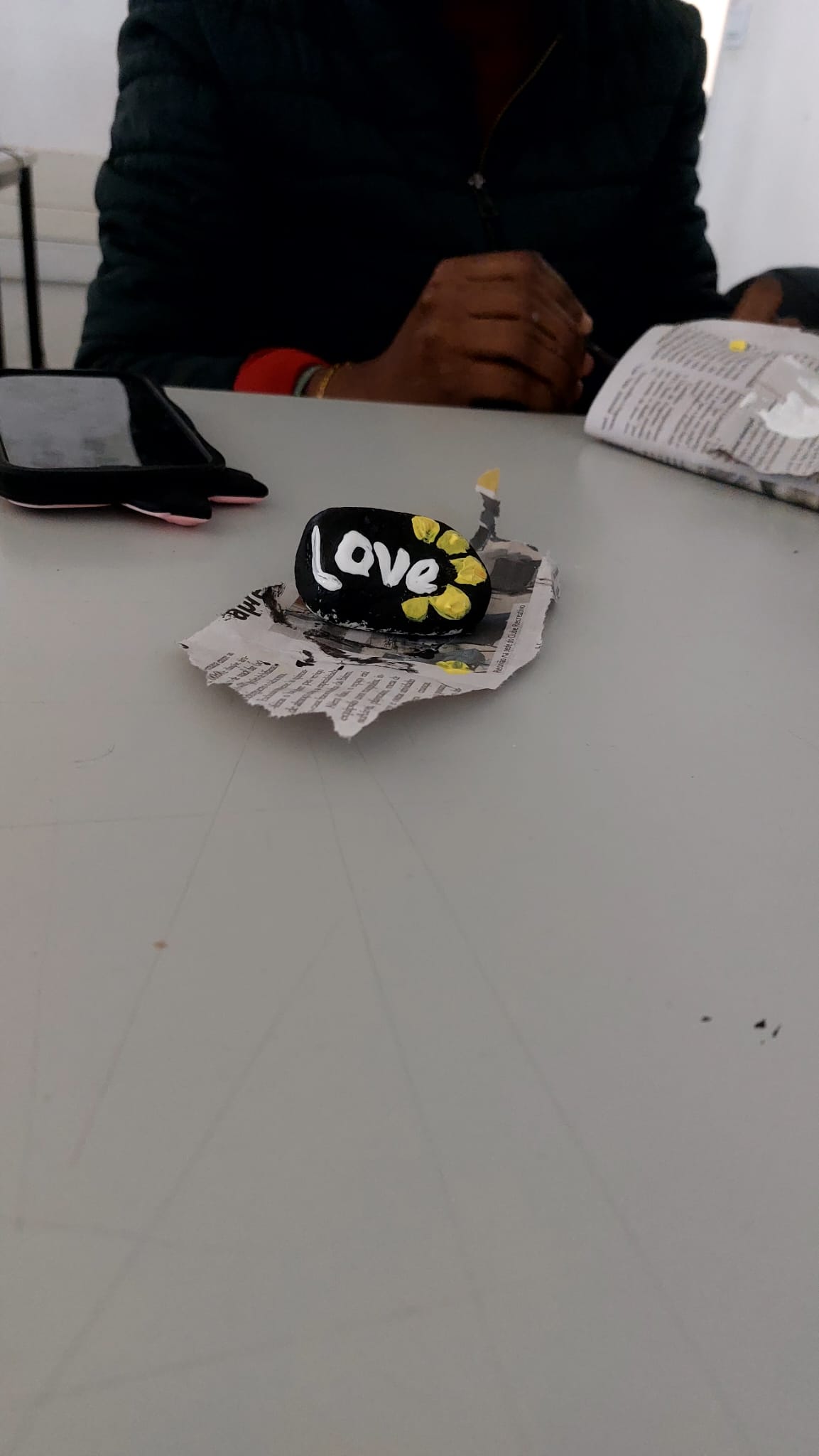 Pintura criativa de pedras na aula de inglês para a Associação Pedrinhas.